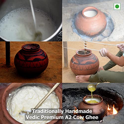 Jar or pot of cow ghee, lighter yellow, often in brass or clay containers